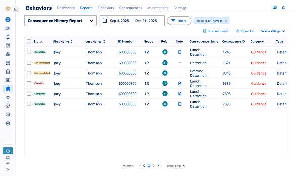 New and updated reports were created to ensure admins can easily track behaviour counters and consequences for each student, streamlining management and saving time.