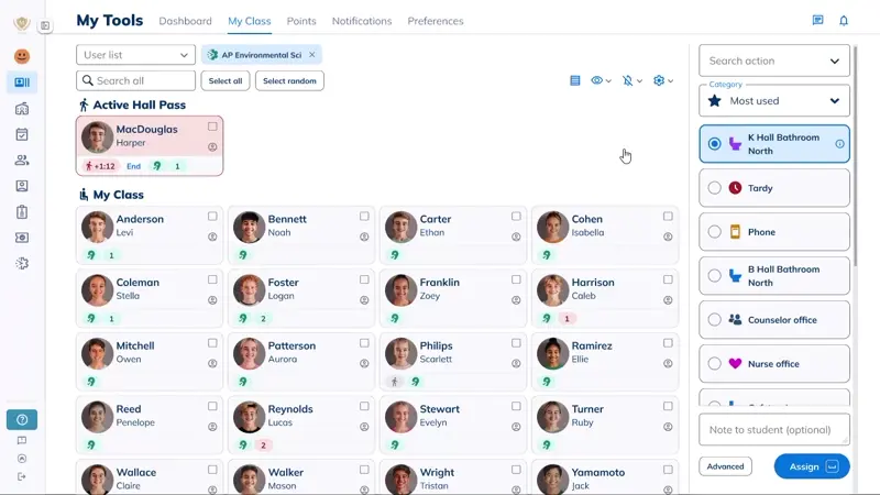 - Assign hall passes, behaviors, and check-ins — all in one place