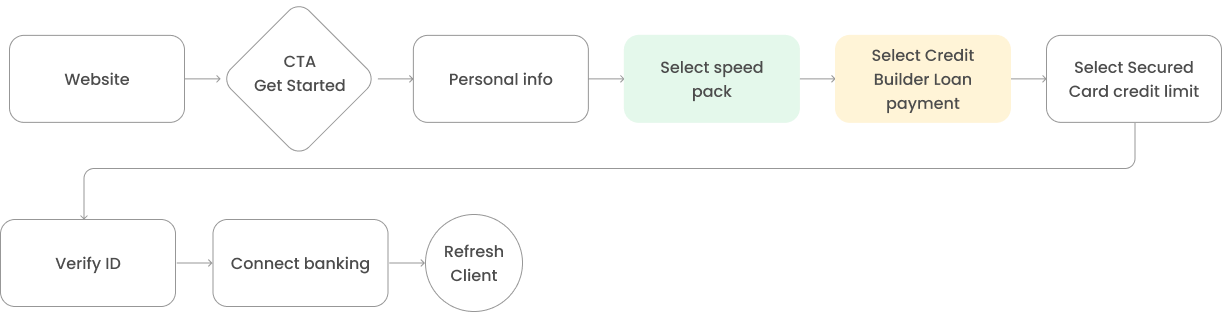 We initially tried to replicate the experience our clients were having on the phone where agents would gather info about their goals and financial situation in order to recommend a more personalized Credit Builder Loan.