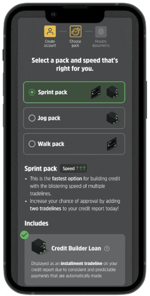 User can select between 3 different packs which include either the Secured Card, the Credit Builder Loan or both.